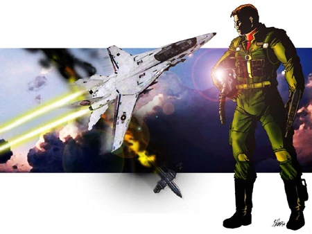 One hand grasping the slash across his belly and the other his sidearm, Rock comes around the corner and sees Ace at the center of a Viper swarm. "Stupid Cobras," he mutters, firing off a shot at the Vipers.