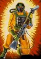 Airtight has always been the unrepentant practical joker. He dabbles in all sorts of pranks. Itching powder, whoopee cushions, plastic barf, everything you could ever think of and more. Such actions would have tested the patience of his teammates to their very limits. He would probably have been thrown out long ago if it weren't for the fact that he's the only one who volunteers to suit up without hesitation for the missions that would make one's skin crawl. Cobra continuously produces ever more lethal concoctions and the fact that any one of them could be so corrosive enough to eat through that suit of his never seem to bother him at all.