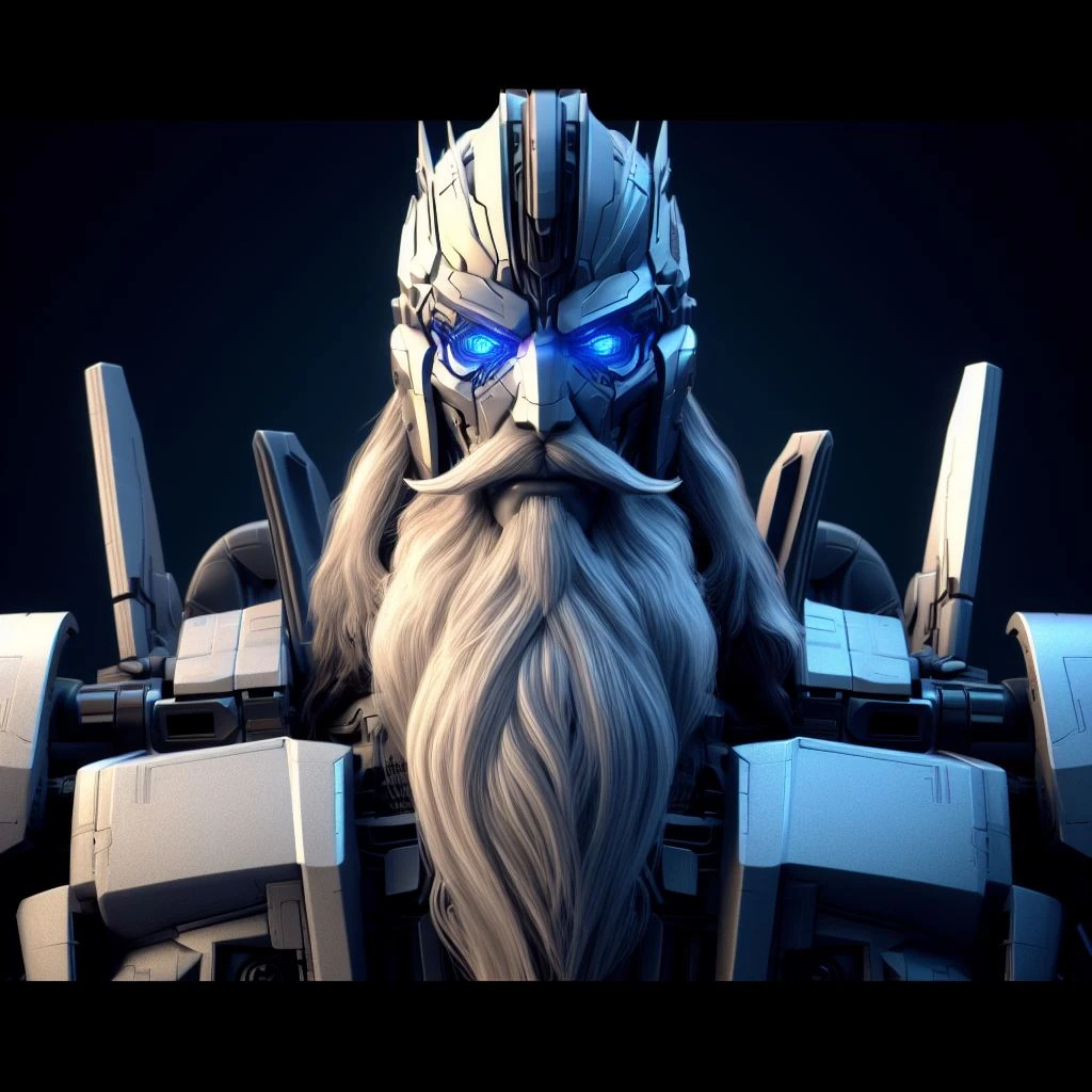 Arcane stands with a bearing and pride that could only come from someone who has lived for so long, he's completely aware of his abilities. His blue optics burn with great intelligence and seem to take in everything around him. His face is slender and angular looking, with a long flowing white mustache and beard that reaches down to mid-chest level. The front of his chest is the intake engine of his tetra-jet mode. Wings span out behind him to form a blood red cloak that shrouds him. His arms and legs are long and slender, and hanging from his mid-section are long skirted panels with ancient symbols engraved within them. On the sides of his arms and on his wings are also ancient symbols of power. He holds a long white staff that is laced with circuitry which hums with ancient power. The intensity of his gaze is enough to make even the boldest of Transformers halt for a second.