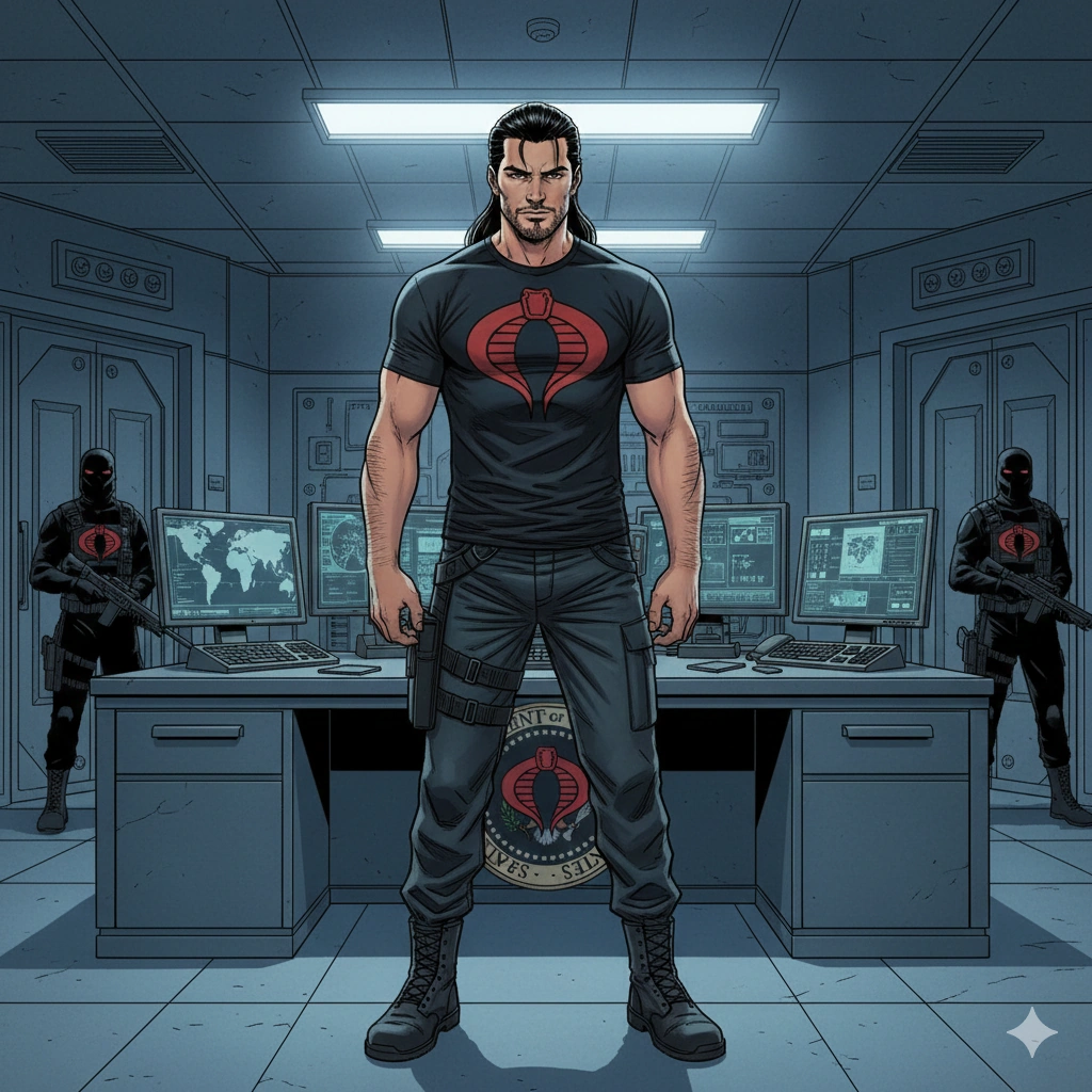 Following Cobra Commander’s disappearance in 2009, internal factions groomed Hannibal to assume leadership, though he stepped back into a field command role upon the Commander’s return in 2010. Promoted to Ground Forces Executive Officer in 2011, Hannibal expanded Cobra’s influence in the United States, collaborating with the Crimson Guard and Dreadnoks. By 2014, he oversaw Cobra’s U.S. field operations and played a key role in the 2015 assault on the Pit. In 2016, he partnered with Zandar to launch a campaign that captured 15 American cities, culminating in the 2017 occupation of Washington, D.C., where the Cobra flag was raised over the White House.