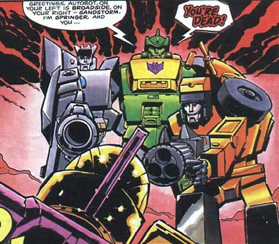 | This page uses content from Transformers Wiki. The original article was at Broadside. The list of authors can be seen in the page history. As with Transformers Universe MUX, the text of Transformers Wiki is available under the Creative Commons License. |