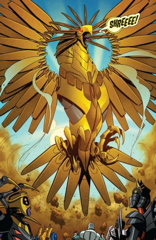 Chela, revered as the "Talon of Onyx Prime" and the "Golden Warrior," is an ancient Titan whose loyalty to Onyx Prime has shaped the destiny of Eukaris. Rumored to be one of the original three Titans alongside Metroplex and Metrotitan, Chela is said to have fought valiantly in the days of the Guiding Hand, participating in legendary battles alongside Primus. He established a sanctuary on Eukaris for beast mode Transformers, reflecting his commitment to protecting those he considers worthy, while harboring a deep distrust for "standard-formers." Throughout his existence, Chela remained steadfastly loyal to Onyx Prime during his reign over Kalis, joining forces with his Titan brethren to exile the malevolent Vigilem, Titan of the evil Liege Maximo, during the tumultuous First Cybertronian Civil War ten million years ago. His wisdom and strength have made him a guardian of Eukaris, embodying the spirit of resilience and the ancient bonds of Titan kinship.