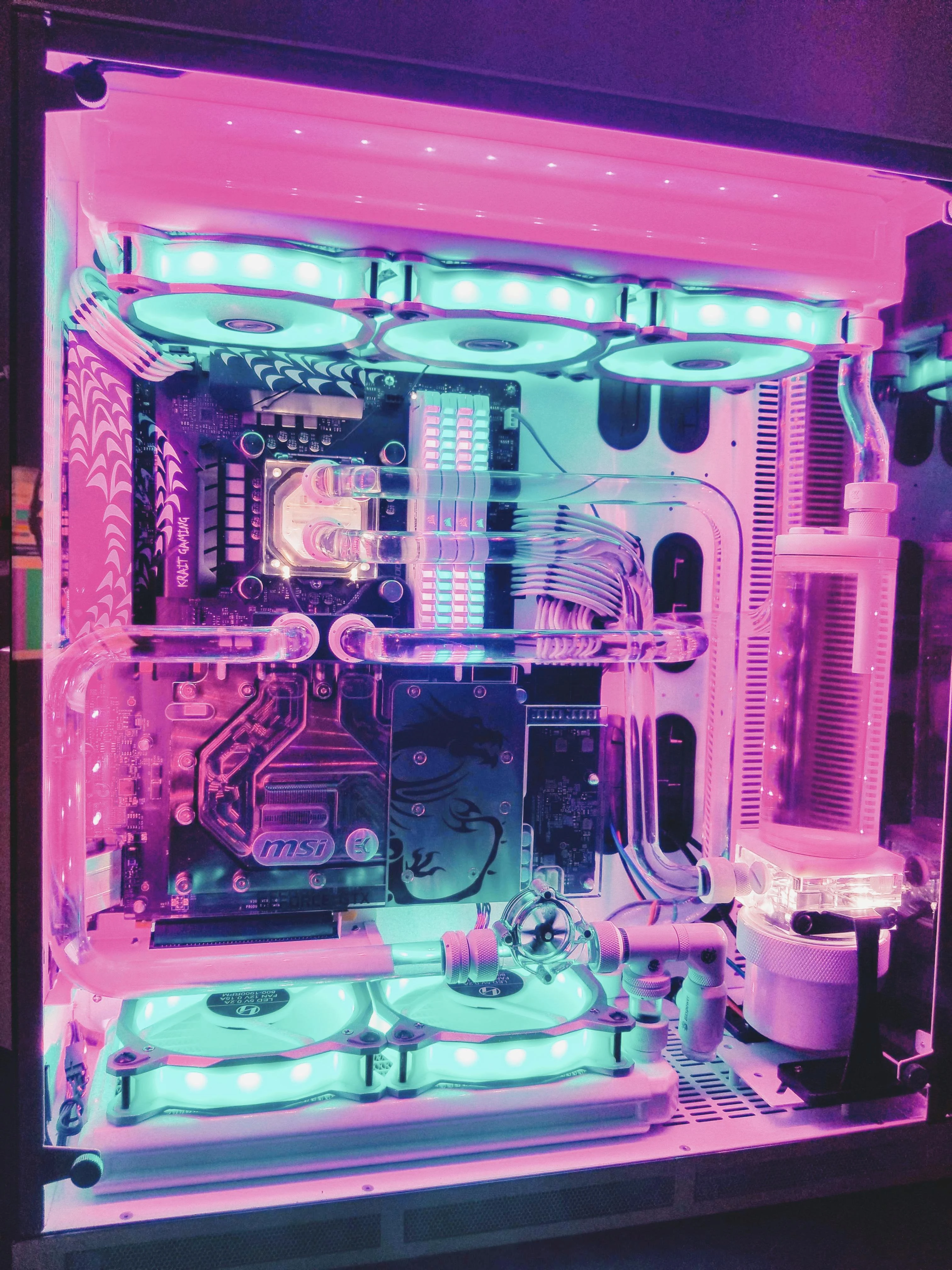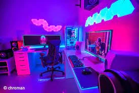 Computer:Meggan has a custom built desktop with interior lights and solid state hardware to prevent crashing and also allows for her to run her research at optimum conditions. She has a few monitors hooked up to it to give her the ability to see what is going on with the data and the renders. While not required, Meggan has opted to install a series of extra LED lights to theme her PC; the lights alternate from blue to pink giving it more of an appeal to fit her off duty theme. She has it set to communicate as a server to her laptop, tablet, and most secured mobile technology. Her goal is to have it record data from her combat suit to help give real time data during a combat scenario and aid with ideas of what needs to be done to help. It also has a pretty loud sound system that she uses to rock out with.