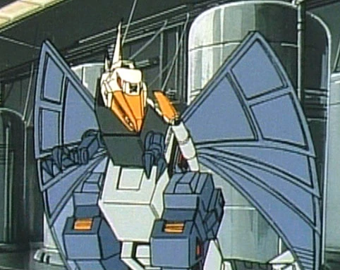Deathsaurus is a Beastforce warrior, partnered with two transforming chestplates that become the Beast Animals Tigerbeast and Eaglebeast. Deathsaurus wields a deadly spiked flail, and the Living-Metal-Destroying Cannon, which erodes the living metallic cells of super-robot lifeforms. The bladed wings of his creature mode absorb sunlight, converting it into dark energy, and he can then launch these energized blades at his opponents in an attack known as his "Death Wing". Despite all of these terrifying powers, however, Deathsaurus is a surprisingly "hands off" leader, who is perfectly happy to allow his subordinates to formulate their own plans and schemes to gather energy for him -— but should they fail, he'll always be there to berate and brutalize them. Even when the plans are his own, Deathsaurus is content to watch and command from a distance, rather than dirty his own hands -— but he'll rarely waste a chance to engage Star Saber on the battlefield, and if that occurs, woe betide anyone who gets in Deathsaurus's way.