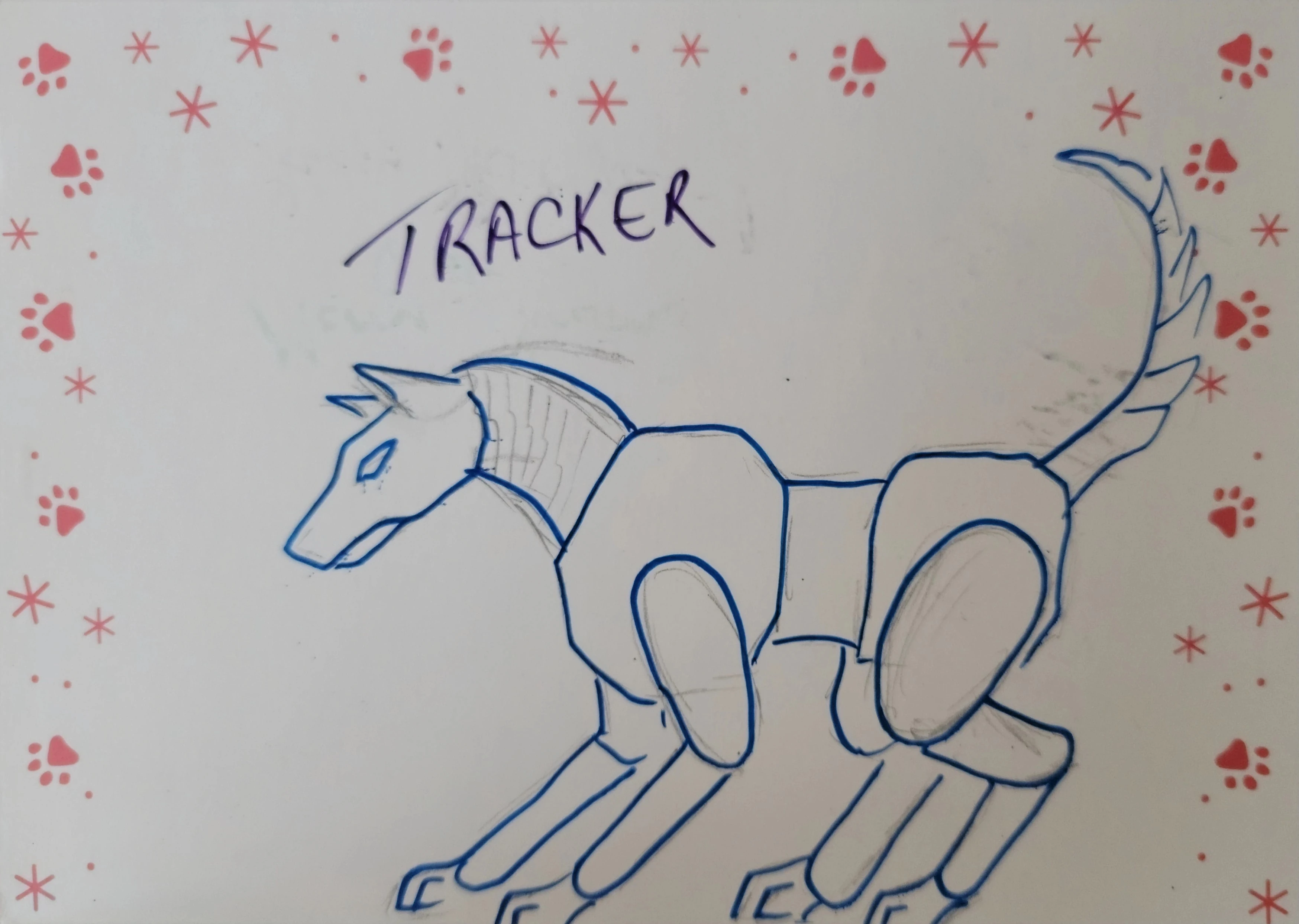 Tracker as a ferrus hound, has the honor of being the lineage for the entire Beast Wars/Beast Tribes saga of characters, due to his presence during Apocalypse World TP where he was scanned to give an altmode form to Tomorrow (AU).