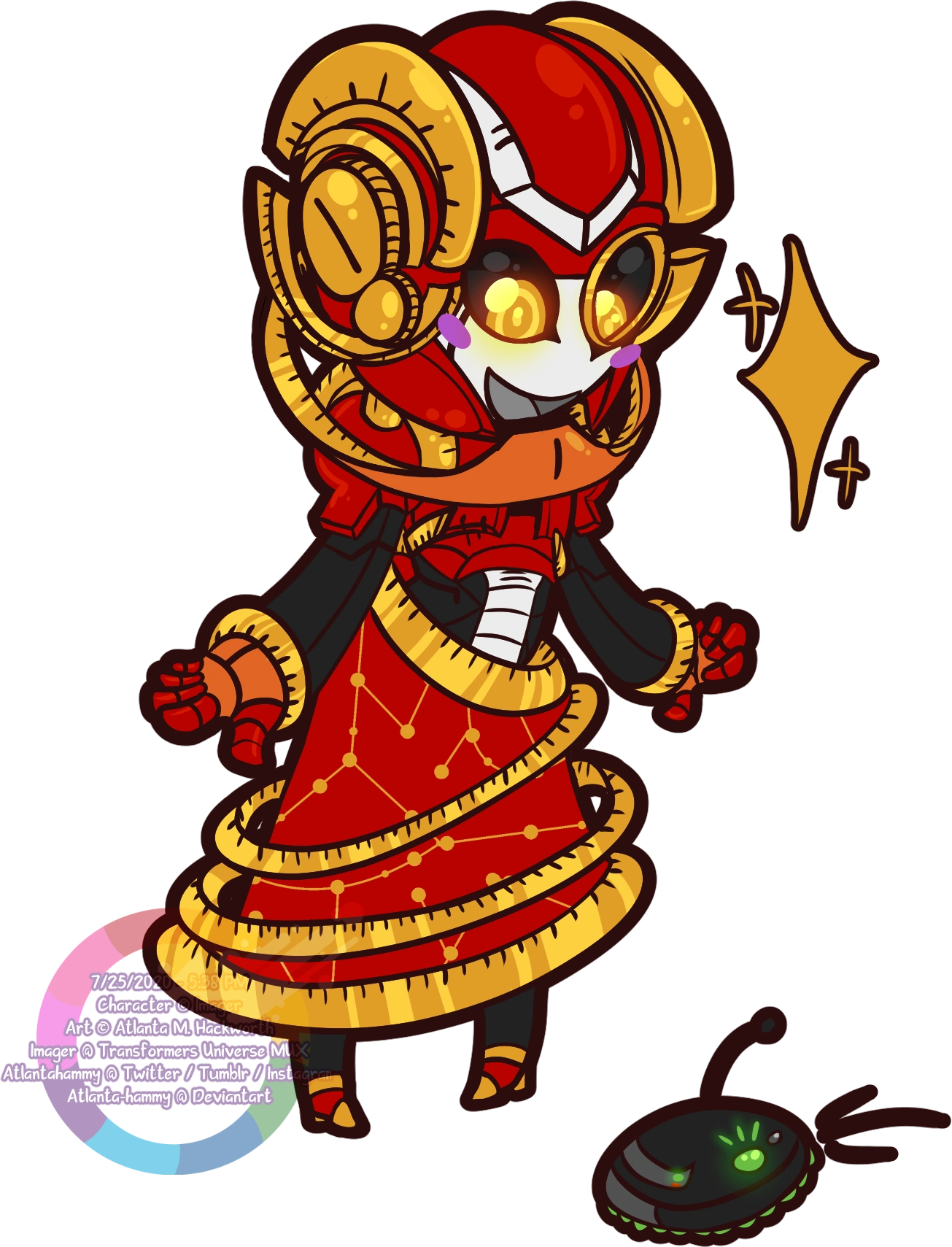 Folly was built during the war to be a Navigator, and given the alt mode of an Armillary Sphere. ( See it here ) its a star globe that keeps track of astrogation data, she also returns to this mode to interpret eneraetherolgical data.