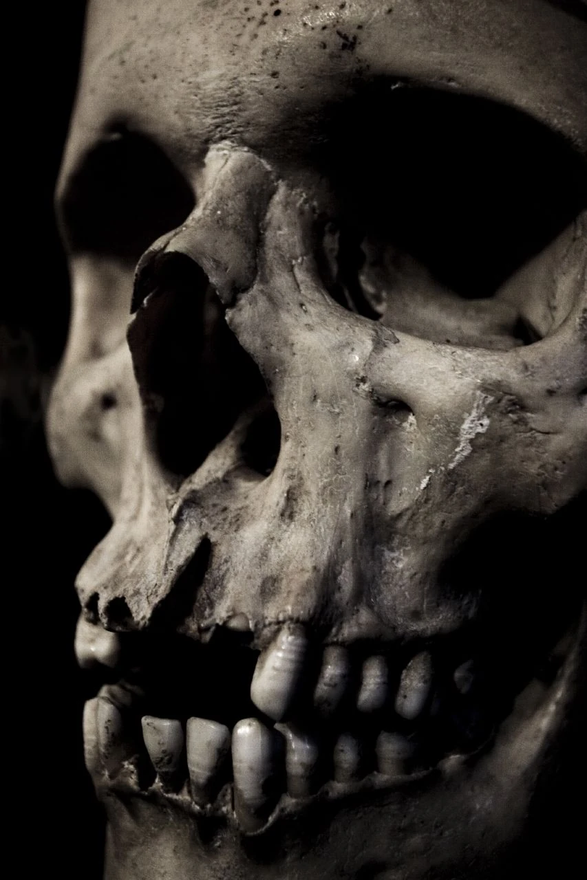 A human skull, often seen as a symbol of death