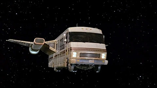 Despite his large, blockish appearance, RV is very friendly and gentle. He likes to help in any way he can, and is very protective of his friends. He does not like to take part in combat, but he will fight if he needs to, especially if a friend is threatened. As a Flying Winnebago, he acts as a transport. Being a recreational vehicle, RV can carry passengers comfortably across land. However, he also possesses powerful engines which make him able to fly both in and out of planetary atmospheres. To add to his space flight ability, he has large FTL drives that make him capable of inter-galactic travel. Due to RV's passive nature, he is very poor in combat. However, he is able to stand up under heavy fire. Also, his devotion to his friends makes him sometimes unreliable in terms of duty, as he would go out of his way to help a friend in desperate circumstances.