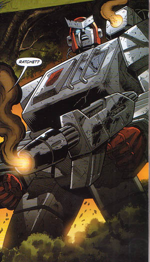 When Optimus Prime was caught in the explosion of the Ruby Crystal Mines of Burma, Ratchet helped the Autobot leader recover, but evidently his skills as a medic were not required, as Prime was fine after transforming back into robot mode. Soon afterwards, Ironhide was shot by Skywarp, so Ratchet carried the old-timer back to base for repairs.