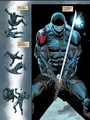 When Cobra unleashed a battle robot within the Pit, Snake-Eyes was trapped with Stalker and Flash in the arms room. Once they managed to get out and catch up what's going on, Snake-Eyes went with them in hunting down electronic transmitter bugs that were hidden in the robot's head.