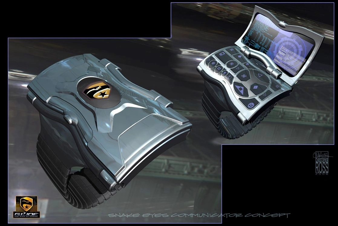 The JOE-COM Gauntlet is a compact, lightweight, feature-laden piece of complex electronics. Resembling a metallic vambrace, the JOE-COM is powered by a laminated paper-thin copper chloride battery.