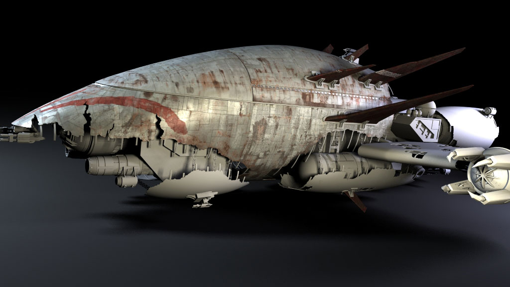 The V’Ger is a vessel of frightening aspect, all rusted sharp edges and broad splashes of blood-red paint. The armor is composed of the patched-together remains of a thousand destroyed ships, and a ram plate at the front of the ship is made from the welded-together corpses of the Junkions’ many victims. A powerful magnetic grappler is mounted on the bottom of the ship, capable of grabbing and holding any other ship in range, making it vulnerable to boarding parties. At the rear of the ship the V’Ger’s power engines are partially exposed, releasing contaminates and radiation in a glowing trail behind the ship.