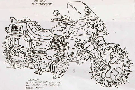 WRECK-GAR is the leader of the Junkions, and like his people, is a walking, extremely powerful and all but indestructible Junkbot, i.e., a robot built of leftover mech parts, scrap metal, and junk. When he is hit by laser blasts and falls apart, he reassembles himself and keeps right on coming. His speech and attitudes are also a junkyard-like collection of languages and broadcast fragments overheard from all over the universe- scraps of TV commercials, soap opera dialogue, old song lyrics and valentine inscriptions merged with quotations from history given out of context. As WRECK-GAR might say, "Holy Mackerel, Mrs. Olson, your mountain-grown easy-listening sidekick, kimosabe, wishes you have a nice industrial-strength day. Film at eleven or not." Wreck-Gar can transform into motorcycle mode and back to robot mode continuously in battle, so that his "ruins" become his transformed mode and back again any time he takes a direct hit. In robot mode, he carries an armor axe and a decelerator laser that inhibits an enemy robot's flow of cerebral impulses. In motorcycle mode he can attain a speed of 160 mph for up to 100 miles.
